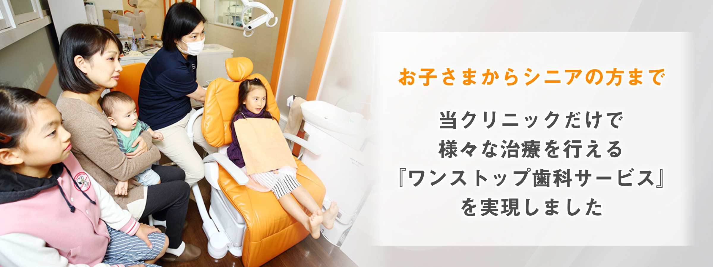 各専門家がそろい、一つの医院でさまざまな治療へ対応することができる、「ワンストップ歯科サービス」を提供することを心がけています。患者さまのお気持ちを大切に、「患者さま目線」の歯科医療を心がけ、熱心で心優しいスタッフが皆さまのお口の健康をサポートいたします。少しでも気になることやお悩みがありましたら、ぜひお気軽にご相談ください。