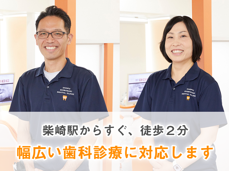 京王線柴崎駅からすぐの調布柴崎歯科クリニックは、さまざまな診療に対応する地域の歯医者です。在籍する歯科医師は2名で、歯周病治療や外科処置を得意とする男性の歯科医師と、歯並び・かみ合わせ・審美治療を得意とする女性の歯科医師が、皆さまの歯とお口の健康を守るお手伝いをしております。