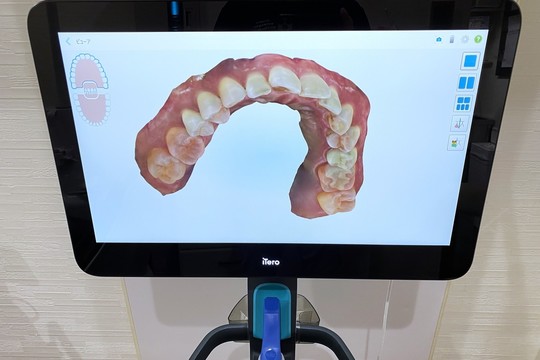 矯正歯科、審美歯科治療で使用する機械です。通常の型取りは、お口の中へシリコン素材を入れ、そのまま数分待つ必要がありました。iTero Element 5Dはお口の中を専用のカメラでスキャンするだけで型取りができ、数分で精密な歯型を3Dデータとして入手することが可能。そのため、型取りで苦しい思いをすることがなくなります。矯正治療が早く楽に、なおかつより正確にできるようになる優れものです。2019年から先代のiTero elementを導入し、2025年から5Dを導入しました。