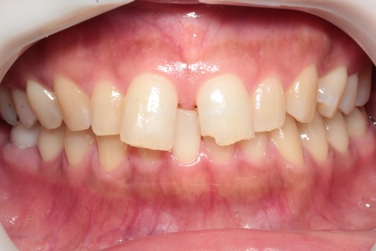 ※治療前の欠けている前歯は治療後に当院で修復しております