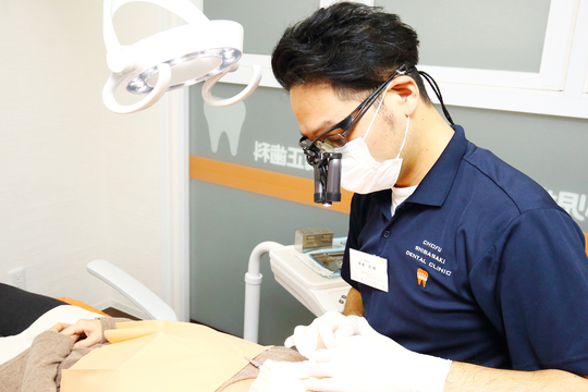 麻酔の方法にも工夫があります。電動麻酔と手動麻酔というふたつの方法のうち、当院では手動麻酔を採用しています。麻酔液の注入速度を遅くすることで痛みを軽減できるのですが、微調整ができない電動麻酔に比べ、手動であれば細かい調整によって電動以上にゆっくりとしたスピードで麻酔液を注入することが可能だからです。痛みを左右しやすい針先の方向にも気を付けており、患者さまに「もう麻酔をしたんですか?」と驚かれることもあります。